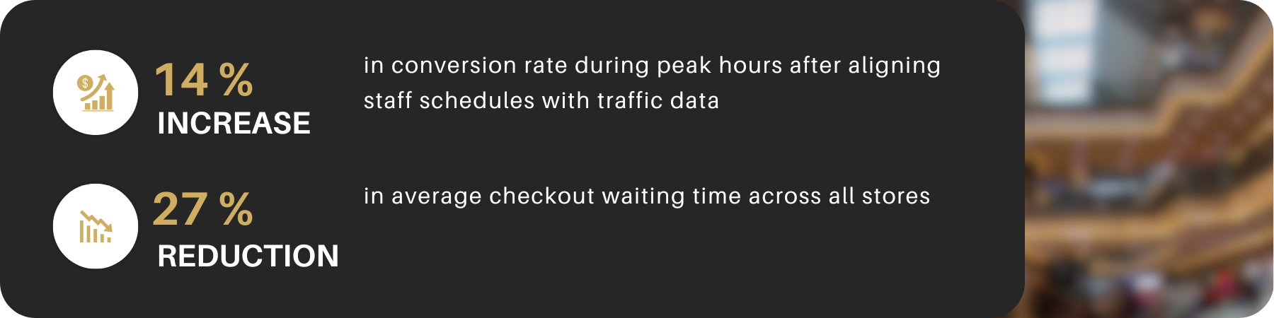 Within three months, the retailer achieved a 14 percent increase in conversion rate during peak hours, and average waiting time at checkout dropped by 27 percent.